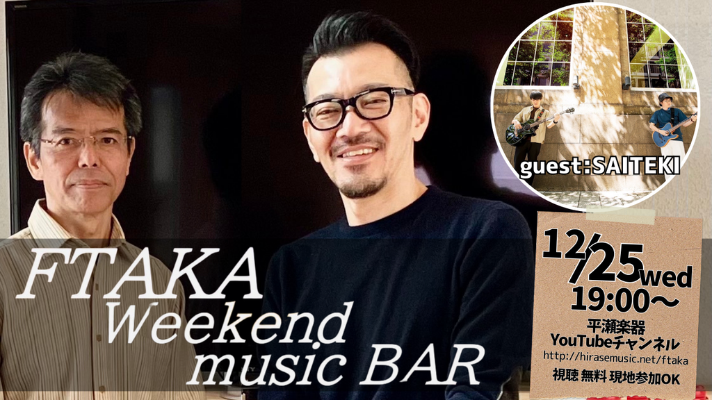 弾き語りミュージシャンとして地域で長く活動をしているFTAKAとFTAKAファミリーによる、音楽とトークたっぷりのまったり配信ライブシリーズです。 週末の仕事帰りにふらっと立ち寄るバーの感覚でお楽しみください!