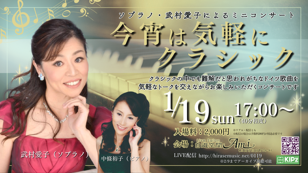 出演:武村愛子(ソプラノ)中條裕子(ピアノ)